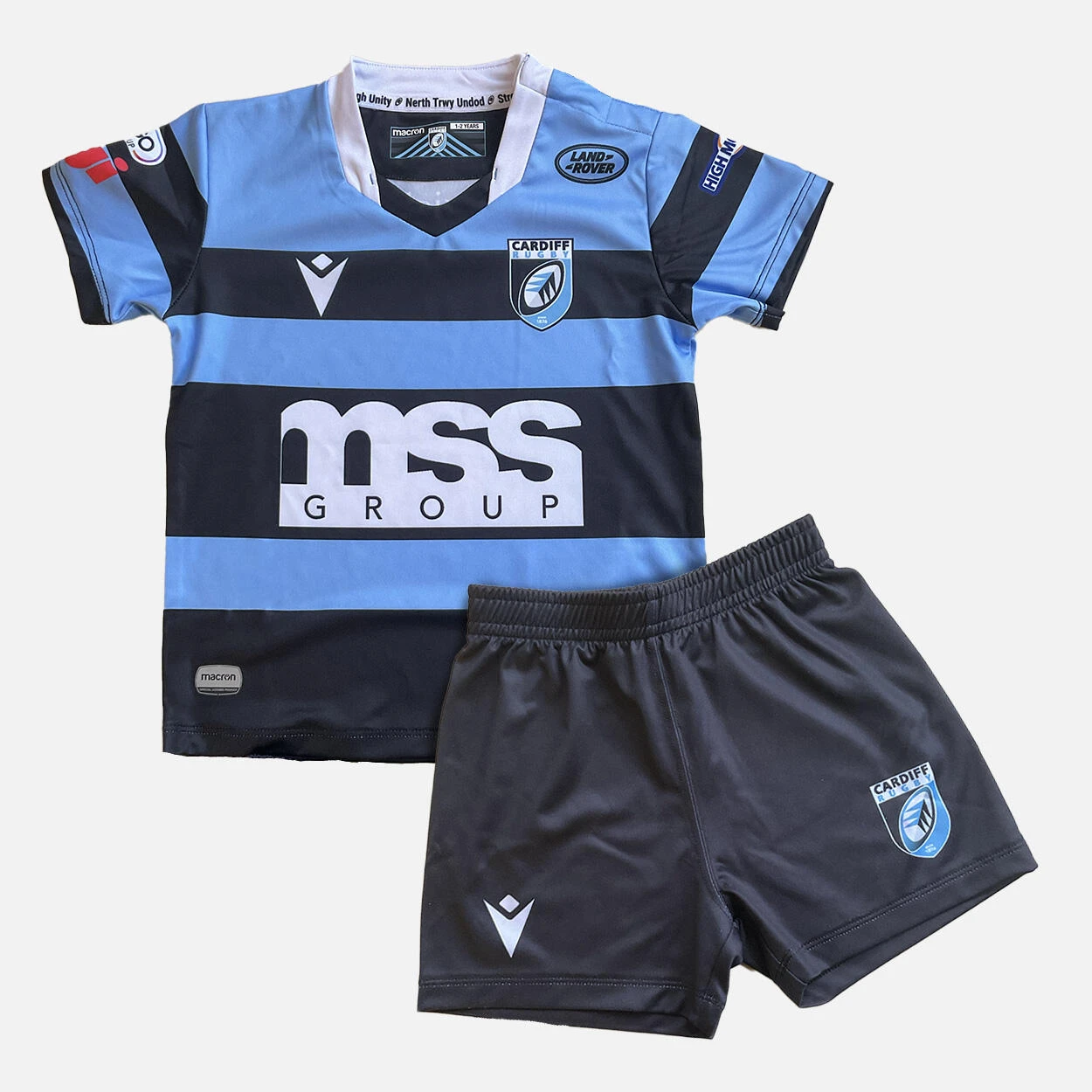 Macron Cardiff Rugby Kids Home Rugby Kit 58555814 Blue